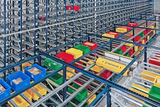 - Fully automated storage system for boxes, bins, totes and small parts.