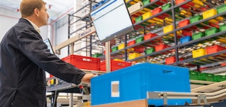 The Shuttle System is combined with pick stations where orders are prepared according to the goods to person method. The boxes are automatically sent to one of these three types of workstations: